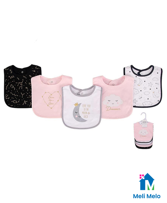 This Little Treasure Set of 5 Bibs is a great value pack of bibs that will help protect your baby’s clothing from drool and spills. These bibs are made of terry fabric that is very soft and absorbent.